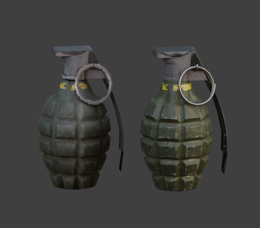Low-poly Mk2 Grenade: 2568 tris, 1290 verts, 1024x1024 PBR textures