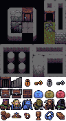 the tileset has basic dungeon tiles, doors, chests, some chars, mobs and items