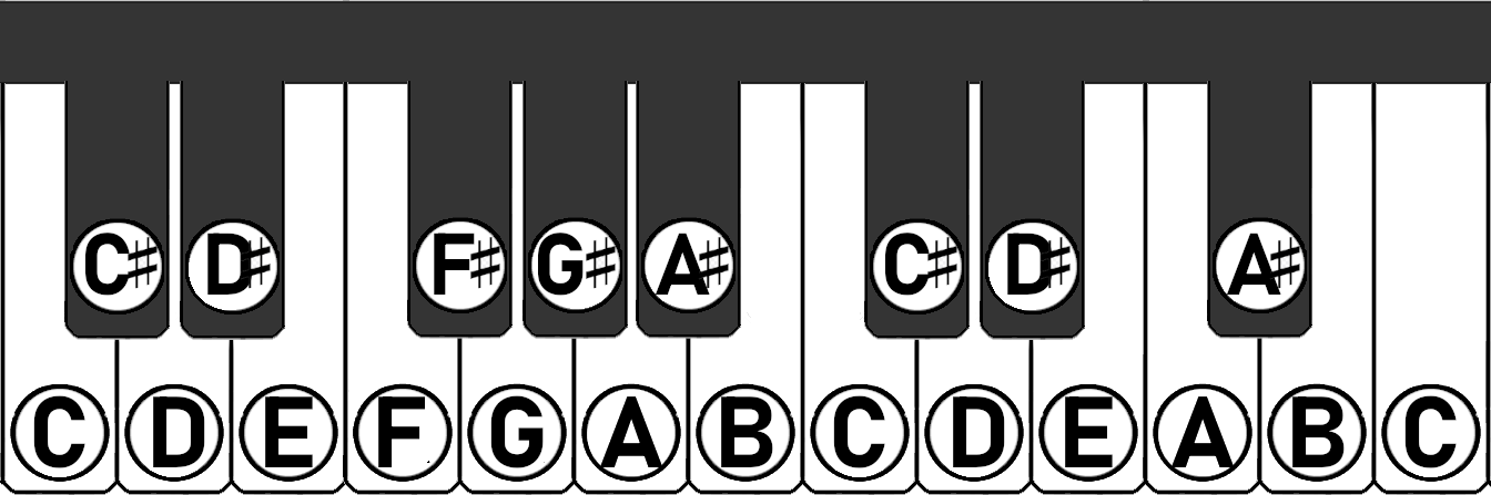 Here are the different ranges of piano, from full 88 key for larger midi and full piano, to smaller 25 key midi controller or toy piano sizes. Included are notenames.
