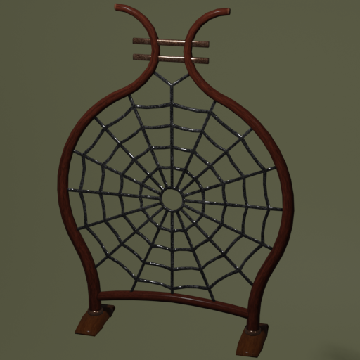 This is a low-poly model of a wall screen with a spider web motif; perhaps a dark elf dream-catcher? The mesh has 2,670 mesh faces, and the PBR textures are 2048x2048px from CC0 licensed sources before modification.